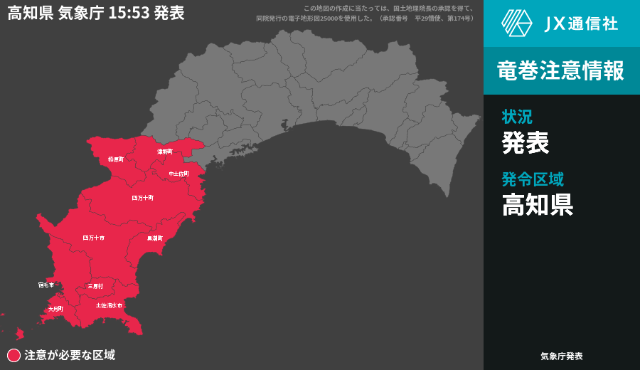 🚨高知県に竜巻注意情報